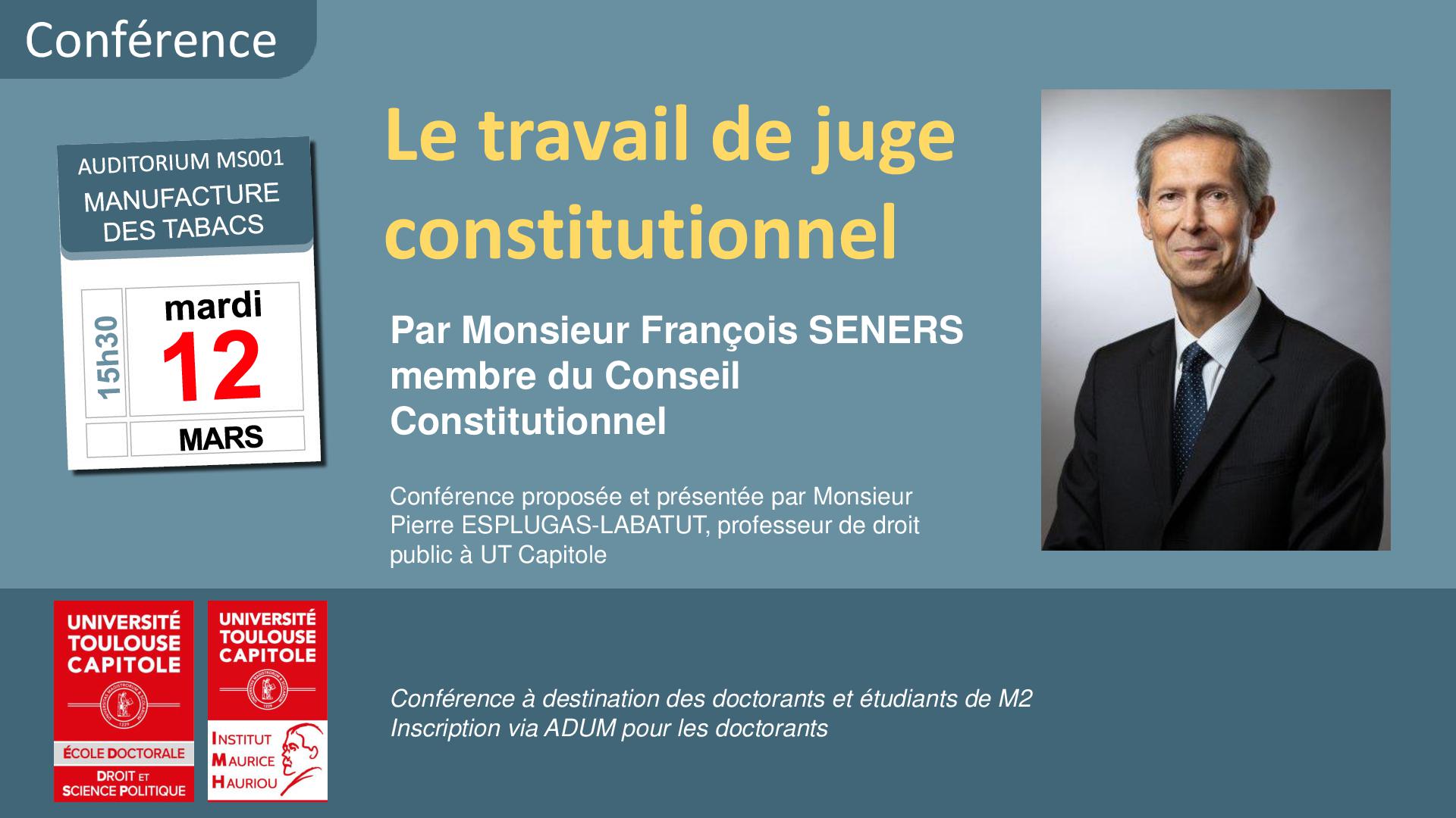 Conférence : "Le travail de juge constitutionnel" par Monsieur François SENERS, membre du Conseil Constitutionnel