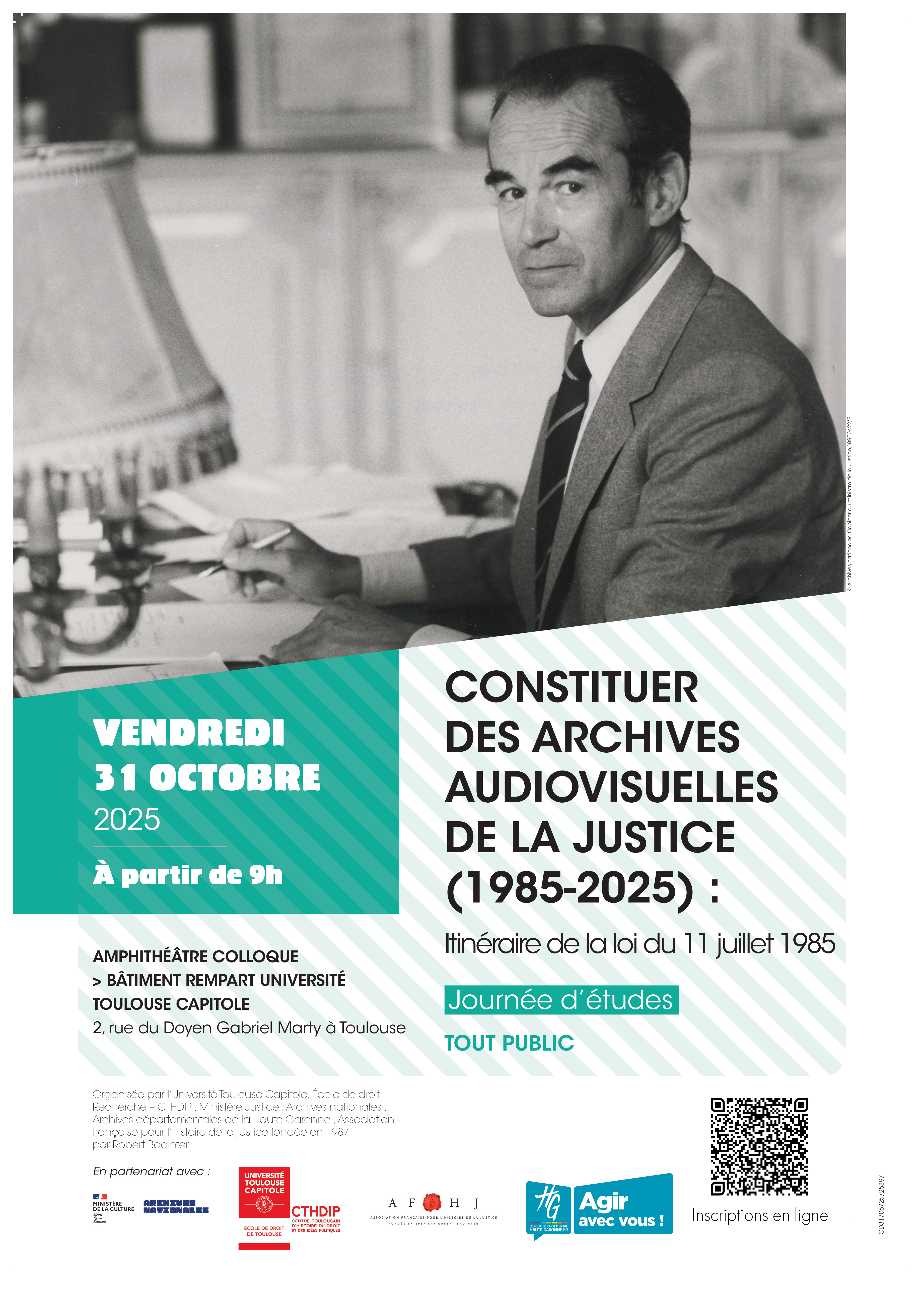 Ce colloque organisé par le Centre Toulousain d’Histoire du Droit et des Idées Politiques, en partenariat avec les Archives départementales de la Haute-Garonne, la Cour d’appel de Toulouse, les Archives nationales et l’Association française pour l’histoire de la justice s’intéresse à la genèse, à la rédaction et à la pratique de cette loi depuis 40 ans. Originellement portée par Robert Badinter, alors ministre de la Justice, elle autorise exceptionnellement un retour des caméras dans le prétoire. Elle s’inscrit dans un héritage tout en portant une dimension inédite : la création d’archives audiovisuelles de la justice en France. De 1985 à 2025, une trentaine de procès ont ainsi été filmés depuis l’inaugural procès de Klaus Barbie à Lyon. L’exemple des procès filmés de la catastrophe AZF en est une illustration locale de son application. Cette journée d’étude questionnera la relation entre les professionnels du droit et la captation audiovisuelle au regard des fins historiques ou scientifiques prévues en 1985 et plus récemment avec la loi du 22 décembre 2021 pour un motif d’intérêt public d’ordre pédagogique, informatif, culturel ou scientifique. Enfin, ces nouvelles archives entre passé, présent et avenir envisageront les enjeux d’archivage et de conservation spécifiques prévus.