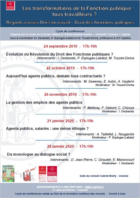 - 24 septembre 2019 : Évolution ou révolution du Droit des fonctions publiques ?