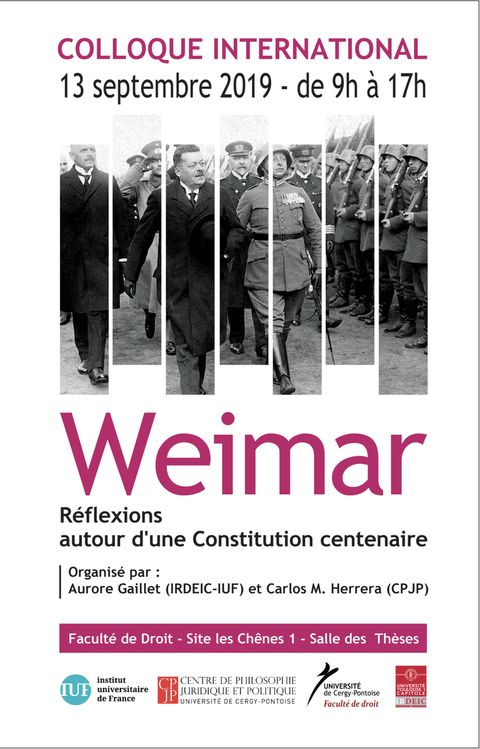 "Weimar. Réflexions autour d’une Constitution centenaire", colloque international organisé par Carlos M Herrera, CPJP et Aurore Gaillet; IRDEIC