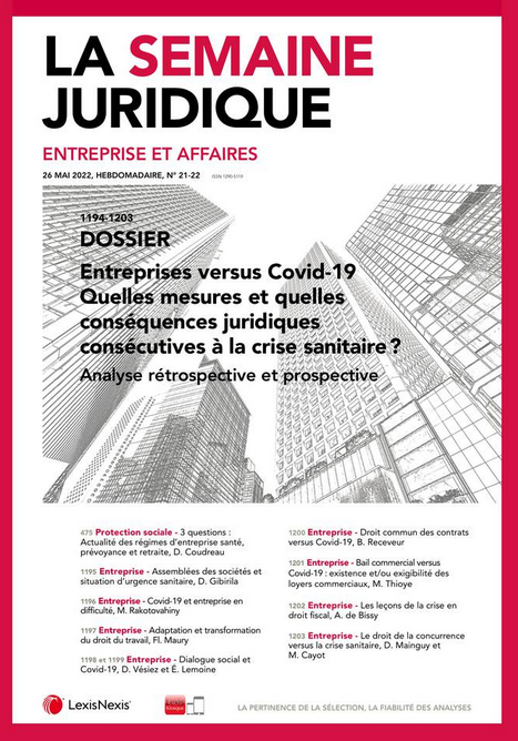 "Entreprises versus Covid-19, Quelles mesures et quelles conséquences juridiques consécutives à la crise sanitaire - Analyse rétrospective et prospective", étude collective JCP E, sous la co-direction scientifique de Bee RECEVEUR