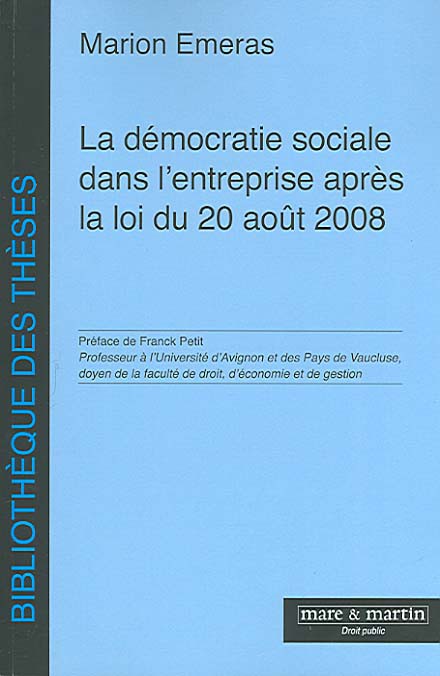 La démocratie sociale dans l’entreprise après la loi du 20 août 2008, Marion Emeras , IRDEIC