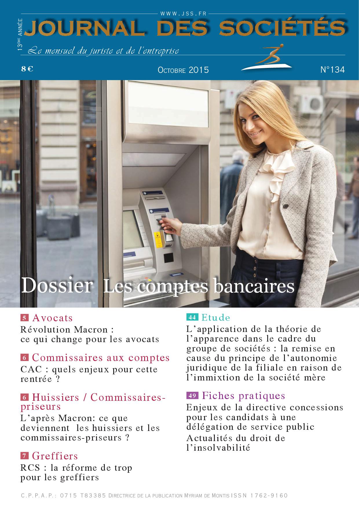 À paraître dans le 134ème numéro du Journal des sociétés, un dossier spécial sur Les comptes bancaires, dirigé par Deen Gibirila professeur de droit à l’Université Toulouse Capitole.