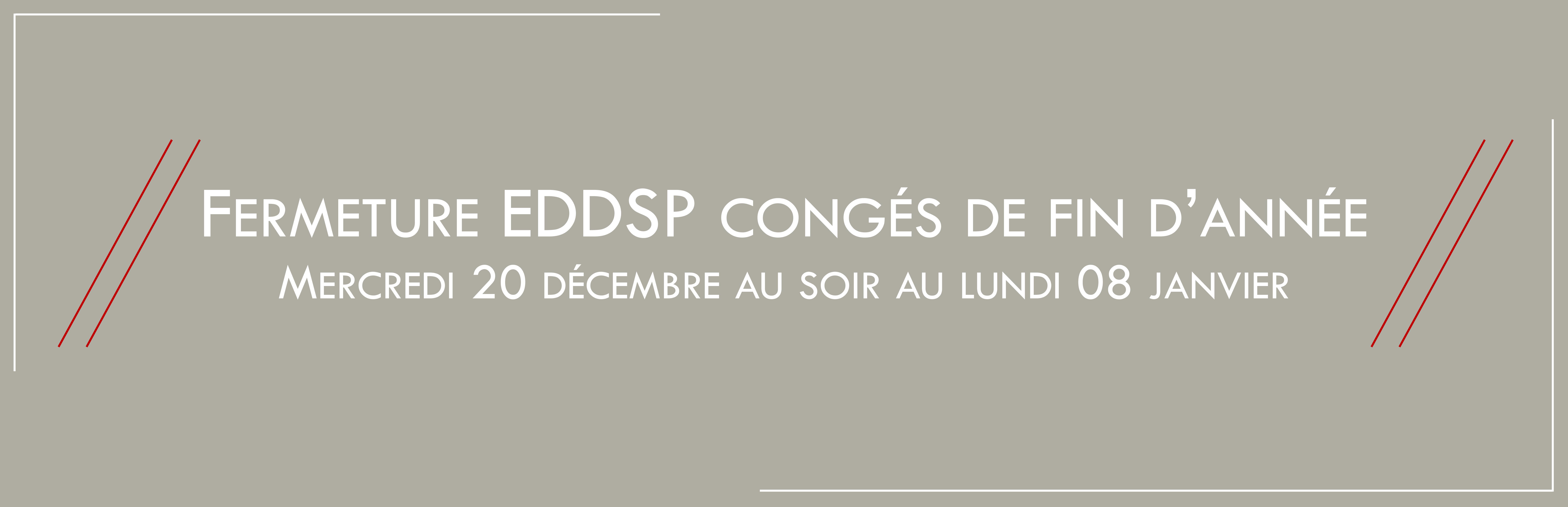 L'École Doctorale Droit et Science Politique sera fermée du mercredi 20 décembre au soir au lundi 08 janvier.